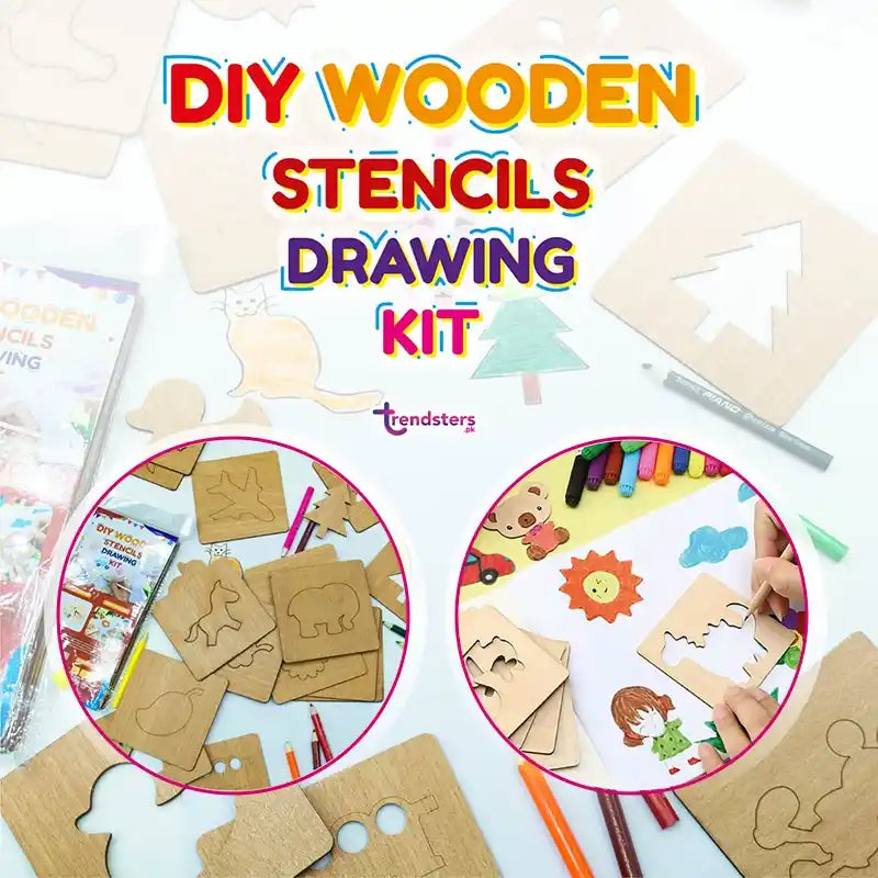 3-in-1 Wooden Kids Drawing Stencils + Puzzle – Learn, Create & Play