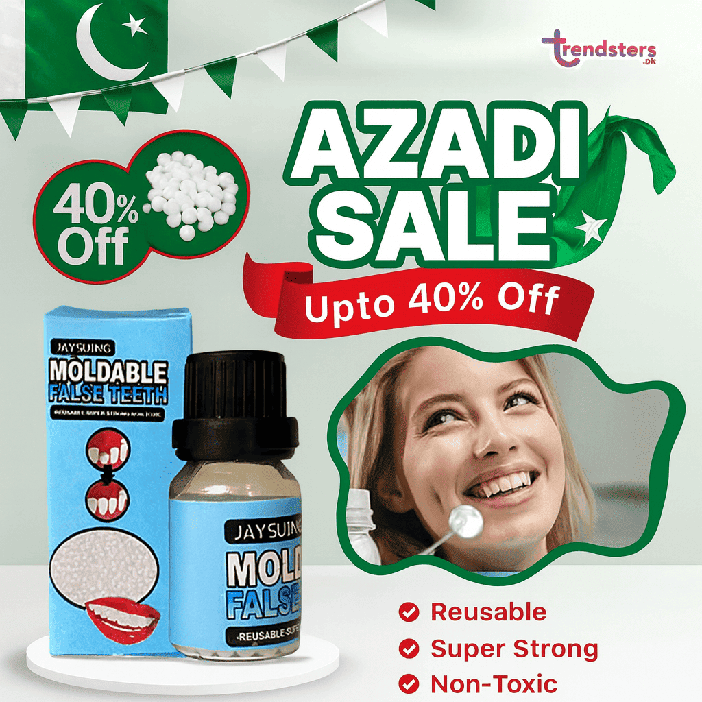 Get a Hollywood smile with Moldable False Teeth! This high-quality and totally safe kit is perfect for filling in missing, broken, or gappy teeth. After a few minutes in boiling water, it can be customized to fit your exact shape and size - so you'll be ready to flash those pearly whites in no time! Say goodbye to your worries and hello to a beautiful, natural-looking smile.